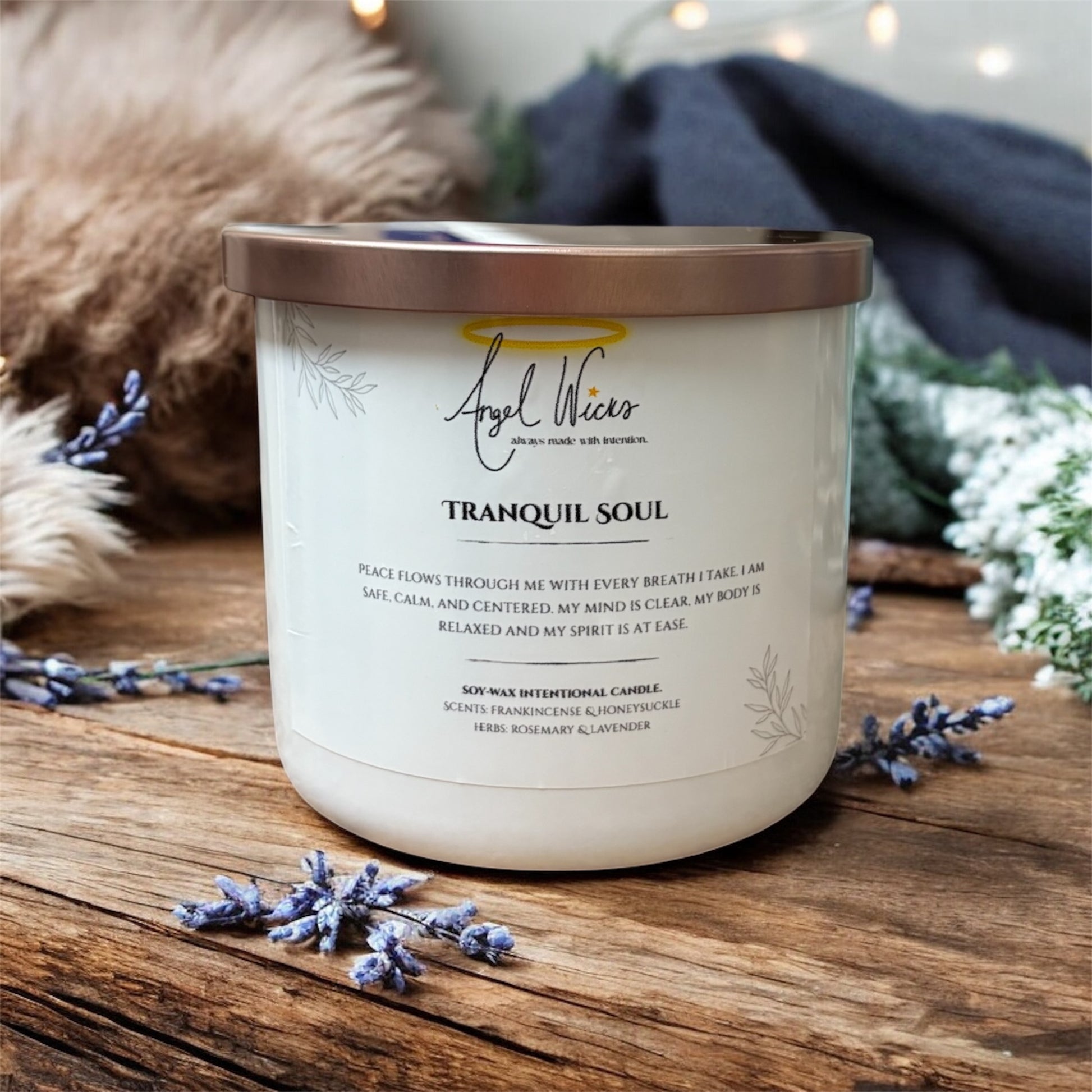 Find stillness in the swirl of life with Tranquil Soul. This calming blend of soothing chamomile and sacred frankincense invites deep peace, emotional clarity, and gentle grounding. Soft and meditative, the scent wraps your space in serenity—perfect for rest, reflection, or restoring balance to the mind, body, and spirit. Light it, breathe deeply, and return home to yourself.